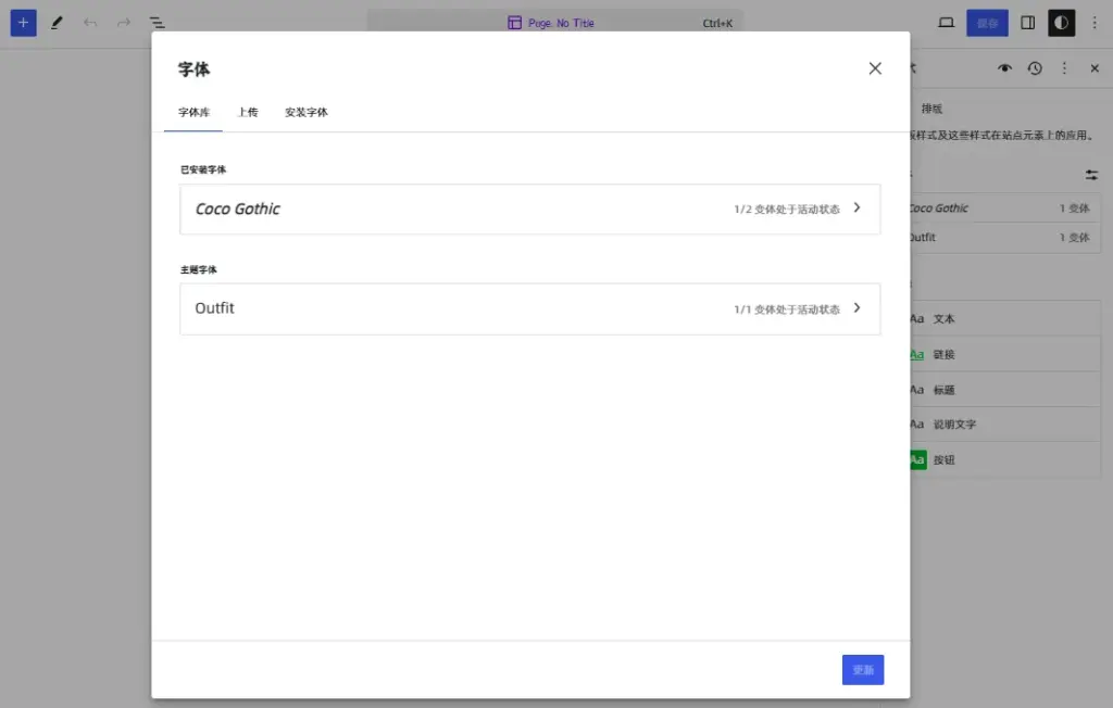 上传的字体会出现在您的资料库中,并可在主题中使用。支持的格式:.ttf 、.otf 、.woff 和 .woff2 。