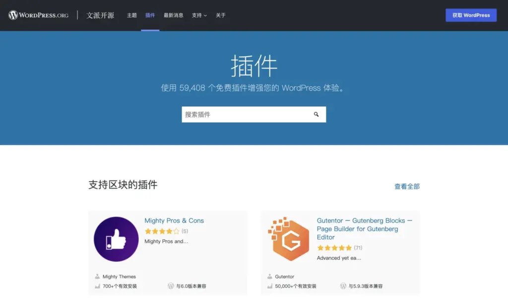 這是完全反代的 WordPress.org 資源並且進行了個性化定製,可以無障礙使用和搜索、下載 WordPress 資源。